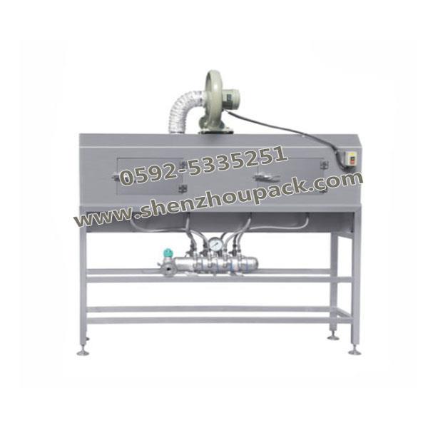 本機特點: 機身為全不銹鋼殼體,爐內(nèi)裝4-8個噴霧裝置,并有風機進行排風;利用蒸汽噴霧式對包裝膜收縮,溫度均勻,可針對不同包裝物的包裝需要;輸送帶的快慢可手動調(diào)整,以達到最佳的收縮效果。 可用于PET、PVC 、OPS等各種工業(yè)標準的收縮膜。